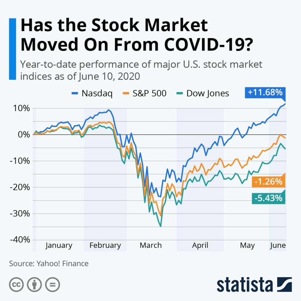 Big Tech makes up almost 25% of the S&P 500 and these stocks have been the most resilient amid a global pandemic. Can you imagine how much more the quarantine would suck without FAANG? No Zoom and no Tiger King. Both run on Amazon Web Services. How sad would your 401(k) be if our tech sector hadn’t recovered?